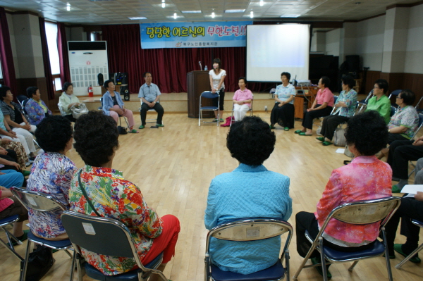 시노인복지기금에서 지원하는 '당당한 어르신의 무한도전'은 75세 이상 어르신을 대상으로 사회적응재훈련을 통한 자아성취감과 자존감을 형성하기 위한 프로그램 입니다.