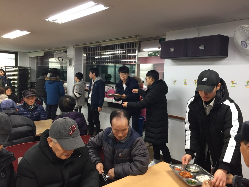 2017년 12월 20일(수) ~ 21일(목) 이틀간 사회복무요원 현장실습을 진행하였습니다. 기관소개를 시작으로 사회교육 프로그램에 참여하여 포켓볼과 탁구를 치며 어르신들과 함께하는 시간을 가지기도 하였습니다. 또한 식당보조와 스마트폰 활용교육 진행을 보조하며 어르신들에게 휴대폰 사용방법에 대해 알려드리기도 하였습니다. 이렇게 사회복무요원들은 실습소감을 나눈 후 즐겁게 현장실습을 마무리 하였습니다
