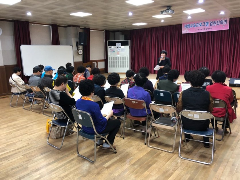 30일(금), 사회교육 프로그램 임원진들을 모시고 제 1차 임원진 회의를 진행하였습니다. 새로 선출된 임원진 어르신들에게 올 한해에도 잘 부탁드린다는 격려와 임명장을 수여하였으며, 상반기 은빛나들이 일정 등에 대한 논의를 하였습니다.