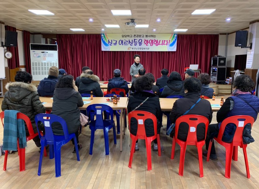 2월 18일(월), 2018년 12월 20일 ~ 2019년 2월 13일까지 신규 회원으로 등록하신 어르신들을 모시고 오리엔테이션을 진행하였습니다. 올해는 특히 많은 어르신들이 저희 복지관에 신규회원 가입을 해주셔서 4층 강당에서 오리엔테이션이 진행되었답니다. 먼저 관장님 인사말씀과 함께 복지관에서 운영되고 있는 사업소개가 이뤄졌습니다. 2019년 사업들이 새로 시작하는 시기인 만큼 다양한 외부지원사업 및 프로그램에 대해 설명과 함께 기관 라운딩을 통해 원활하게 복지관을 이용하실 수 있도록 안내해드리는 시간을 가졌답니다. 복지관에 오신 것을 환영합니다♡