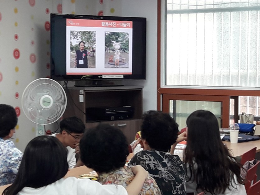 이제 마무리 되었는데요. 마지막 시간은 다과를 즐기며 그동안 활동해오신 내용들을 PPT로 꾸며 살펴보는 시간을 가졌습니다.