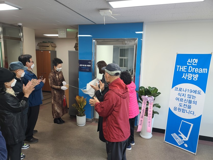 많은 분들의 성원에 힘입어 무사히 공사를 끝마치고, 어르신들께 새 단장한 정보화교실-“신한 더 드림 사랑방”을 선보이게 되었습니다.