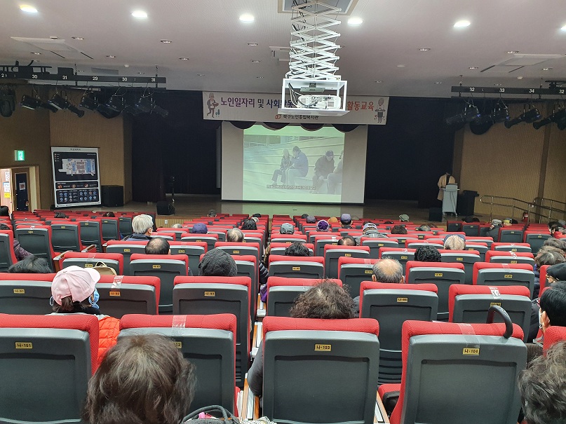 2021년 3월 5일 부터 8,9,10,12일 까지 북구 청소년수련관에서 노인일자리 및 사회활동지원사업 1회차 활동교육이 이루어 졌습니다. 인권, 학대 예방 교육과 안전 및 성 교육을 주제로 노인 일자리 참여 어르신 968명을 대상으로 방역 수칙에 따라 마스크 착용, 발열 체크, 거리 유지 등을 준수하여 진행되었습니다.