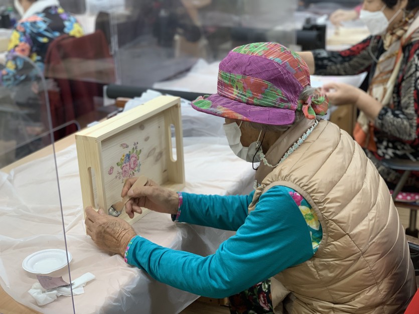 어르신들의 치매를 미리 예방하기 위하여 손을 움직이는 작업을 함으로써 작품을 만들어 내어 만족도가 높은 결과를 내었습니다. 프로그램에 도움을 주신 치매안심센터에 감사합니다^^ 어르신들 건강하세요~~