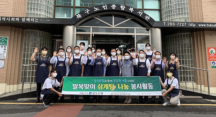 지난 12일 말복을 앞두고 광주은행이 후원하는 삼계탕 나눔 행사를 북구노인종합복지관에서 진행했다.