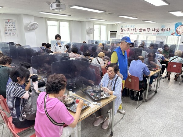 [데일리스포츠한국 이석희 기자] 광주광역시북구노인종합복지관이 ‘한가득 사랑 삼계탕 나눔행사'를 펼쳐 훈훈한 미담을 실천했다.